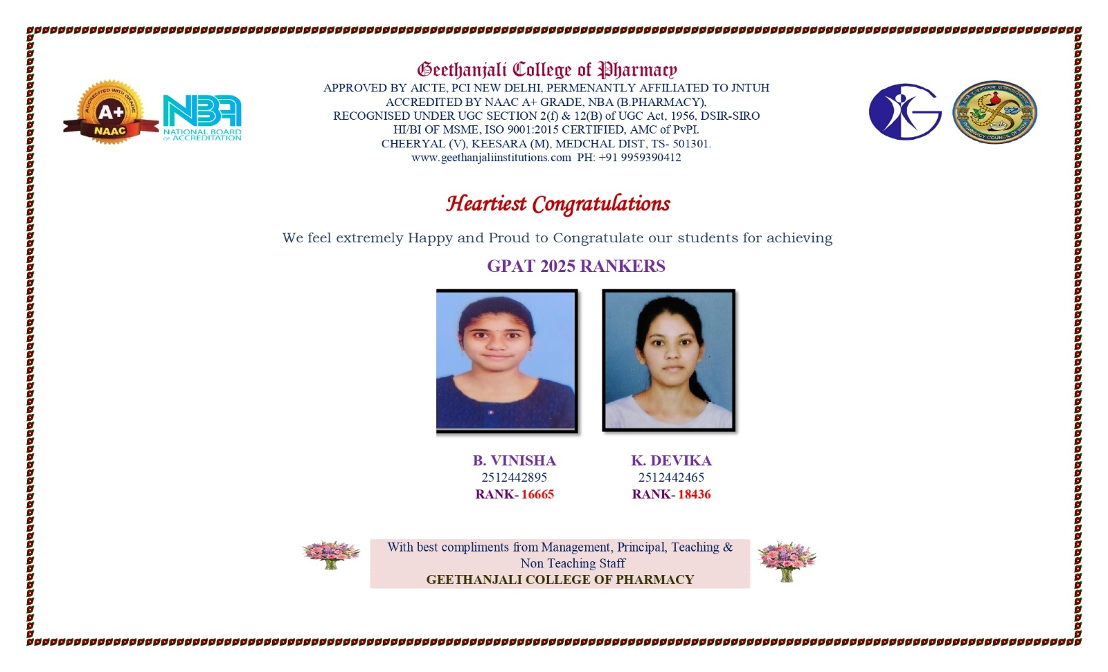 The Management, Faculty Staff & Students of Geethanjali Group of Institutions eagerly look forward to welcoming you back to your Alma Mater.